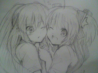 忙しい他のメンバーにかわって、ブログ書かせていただこうと思います。 昨日はメンバーで集まってお好み焼きパーティ兼、会議でした! お好み焼き美味しかったー!!!!!けいおん!見ながら食べましたw 夏コミの新刊は、オフ本とコピー本になりそうです。コピー本は、マナさんに期待!ということで。笑 お楽しみに♪ その後は私とふくさんで、ひたすらマナさんに絵をリクエストしたり、ふくさんをおいてけぼりにして私とマナさんでヴェスペリア(テイルズ)について語ったり・・・・笑 ってことで、描いてもらった絵の一部をご紹介~♪(マナさんの許可は取ってあります) 携帯で撮影したので荒くて申し訳ないです;;クリック推奨だよ! こまりん!!!!!か、可愛過ぎる・・・・><この二人はほんと見ててほわほわします♪ 冬コミで売り子をしていた時、実はリトバスを知らなかった私ですが、その後、二人の勧めもあって、今では大好きです。鈴ちゃん可愛いよ鈴ちゃん。 いっつも私のリクエストに嫌な顔ひとつせず答えてくれるマナさん大好きです^^ 実はね、新刊が渚本なのも、私のリクエストですさーせんwwwww 渚は私の世界一の嫁です。 新刊は、私もどんなものなのかまだ知らないので楽しみでしょうがないです。。。。 そう、聞いてくださいよ。 私、次の日バイトだったので、あまったお好み焼きはバイトの休憩中に食べよう!と思って多めに焼いておいたら・・・・・ 朝起きたらマナさんとふくさんが朝ごはんとして食べちゃったんですよ!!!!!>< ま、いつまでも寝てる私がいけないんですが・・・二人とも、朝が早いです。 まぁ、こんなカンジで集まってはてんやわんややってるみけぶくろ。ですが、今後ともよろしくお願い致します♪♪ こんばんは!!ブログ空け過ぎですみませんm(。。)m